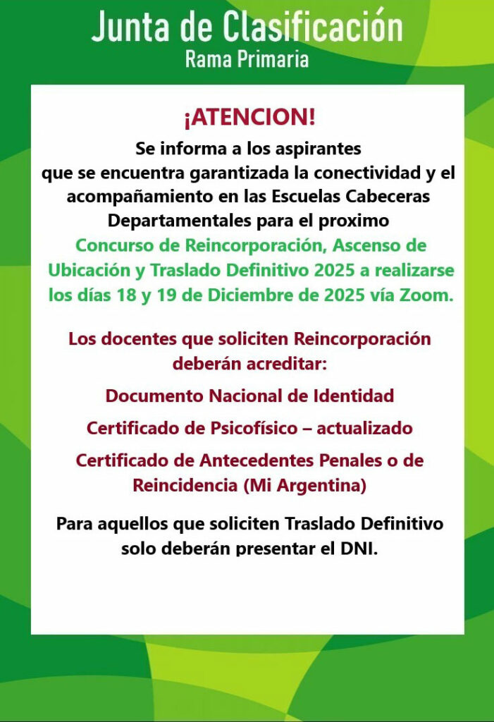 Publicado el 17 diciembre, 202517 diciembre, 2025 por Ministerio Educación de Corrientes¡Atención Aspirantes! La junta de Clasificación Rama Primaria informa: