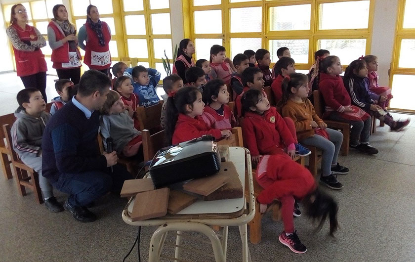 Representando las Escuela Normal Juan G. de Cossio, 6° grado. del Turno Tarde del NP; y su Docente, Fabian Alegre; y la Escuela N° 134, JIN 24, Salita de 3 años, y su Seño; Araceli Morales.