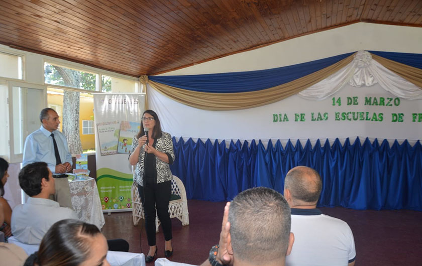 Al hacer uso de la palabra, la titular de Intercultural Bilingüe transmitió el saludo de la ministra de Educación Susana Benítez que por razones de agenda no pudo estar presente. Así como también, destacó el crecimiento que tuvo desde el 2004 las escuelas de frontera ya que la provincia de Corrientes contaba con cinco establecimientos educativos, en la actualidad son 15. “Una frontera es un espacio donde se entrelazan culturas con un vínculo social, económica y de producción. Es un territorio único, donde conviven dos culturas que de a poco se convierten en una. Las escuelas de frontera vinieron a ocupar un lugar muy importante desde mediados del siglo XIX, tratando de acercar la escuela a aquellas personas que vivían alejadas del país y en esos espacios la Nación necesitaba garantizar que todos los ciudadanos pudieran educarse con igualdad, así nació las escuelas de frontera”.