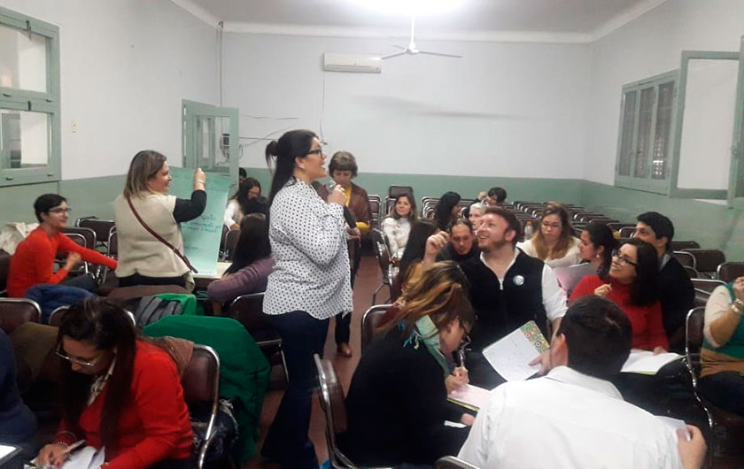 El día viernes 21 se llevó a cabo en la Escuela Hogar de nuestra ciudad la primera jornada del curso para docentes de portugués » Educação, formação profissional e Saúde: Questões importantes para serem trabalhadas na sala de aula». Los disertantes Fernanda Fettermann y Rhenam Ferraz provenientes de la Universidade Federal do Río Grande do Sul de Brasil, especialistas en temas de salud volcados al área educativa brindaron una jornada plasmada de aprendizajes con diversas estrategias para abordar este tema en las escuelas tanto desde la lengua portuguesa como también su abordaje interdisciplinario.