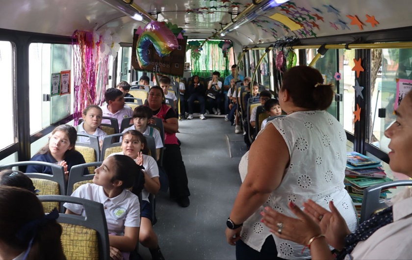 Luego de varios días de trabajo en las aulas, alumnos correntinos participaron este jueves de una nueva entrega del Colectivo de Lectura que integra el programa “Corrientes lee: un libro más en cada hogar”. Esta iniciativa busca fomentar la lectura en ámbitos que van más allá del aula. Bajo el lema “Tu libro tiene un nuevo destino. Subilo al colectivo de lectura”, la actividad invita a la comunidad a sumarse y hacer que cada libro encuentre un nuevo lector. En esta oportunidad participaran escritores correntinos y nuevos referentes de bibliotecas populares.