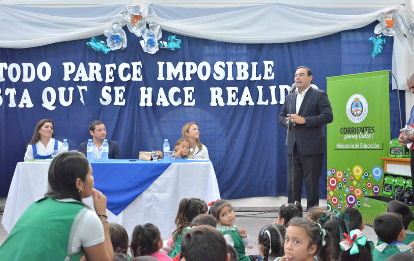 Haciendo mención a la entrega de equipamiento tecnológicos, Valdés expresó «poder entregarles estos elementos los hace capaces para buscar conocimientos dando un paso en la modernización para que todos tengan educación de calidad».