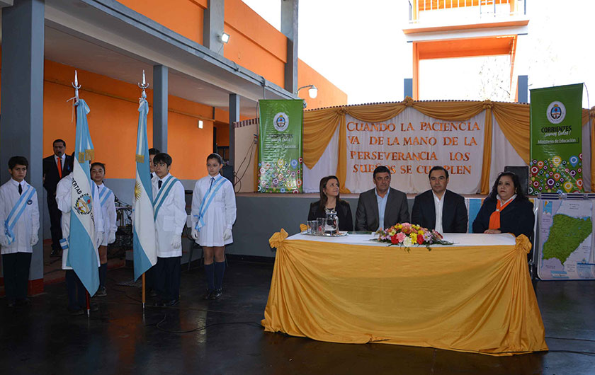 Acompañaron al primer Mandatario y al intendente Eduardo Burna, los ministros de Educación, Susana Benítez; de Coordinación y Planificación, Horacio Ortega; Seguridad, Juan José López Desimoni; de Obras y Servicios Púbicos, Bernardo Rodríguez; Industria, Trabajo y Comercio, Raúl Schiavi; la directora de Educación Secundaria, Práxedes López; entre otros funcionarios provinciales y municipales.