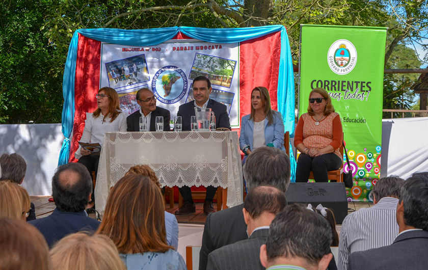 Posteriormente, Valdés y la comitiva oficial se trasladaron hasta la escuela 840 del paraje Mbocayá, donde su directora, Sonia Rodríguez destacó la “repuesta satisfactoria de un Gobierno que supo escuchar nuestros reclamos”. Se refirió así a la inauguración de las refacciones que concretaron en la oportunidad, entendiendo que los esfuerzos allí deben ser orientados “hacia una escuela liberadora e integradora para edificar una sociedad más justa”.