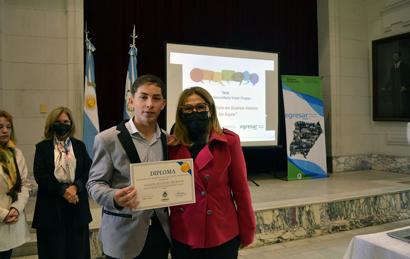 Acompañaron también el rector del Colegio Secundario Iberá, Hugo Villareal y la vice rectora de la escuela Normal José Manuel Estrada, Rosalía Itatí Cardozo, docentes tutores de Egresar, estudiantes y familiares.