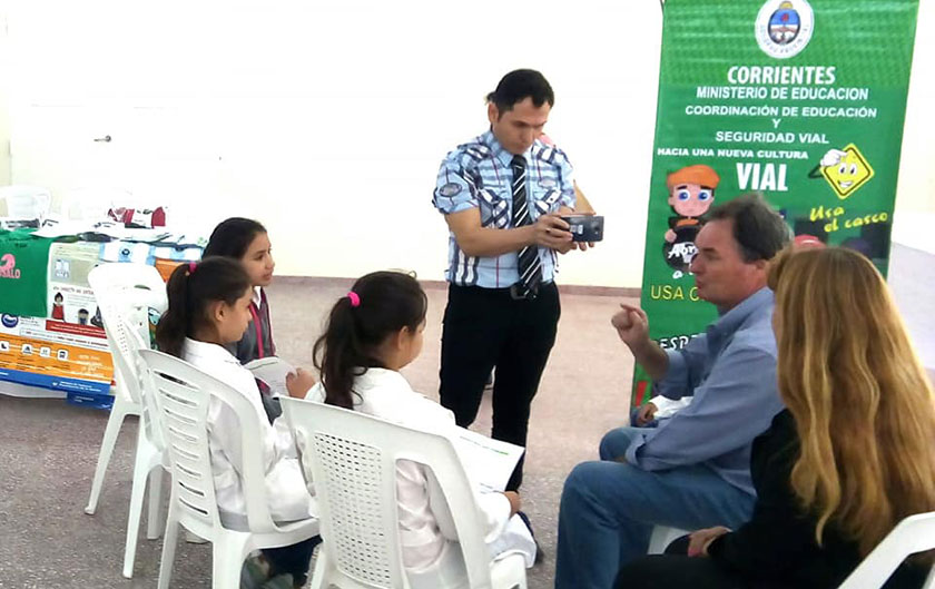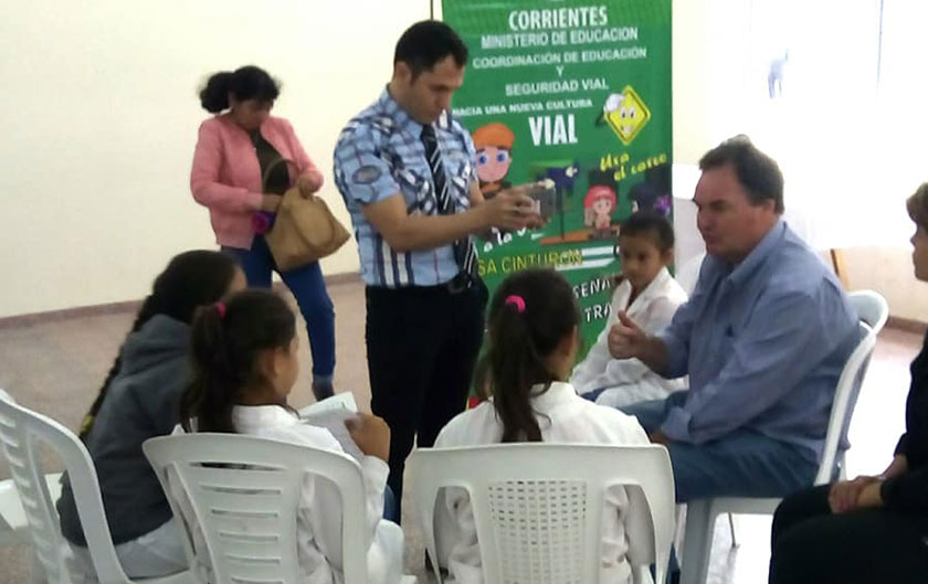 «Formar generaciones que estén en condiciones de salir a la Vía publica». Fue el permanente mensaje del Director de Educación y Seguridad Vial, de la Provincia, en la Localidad de Itaibate, durante las Jornadas que se realizaron en las Charlas Talleres, el día 25 de Junio, para estudiantes de los Niveles Primarios y Secundarios, en donde los alumnos de la Escuela Primaria Nro. 824 «Luis Gonzaga Chequin» y del Colegio Secundario J. Joaquina L. de Perez; aprovecharon la oportunidad para llevar a cabo una entrevista al Referente Provincial de Educación y Seguridad Vial, Lic. Daniel Umbert, sobre siniestros viales por colisión con animales silvestres y el funcionamiento del cerebro frente a los estímulos, como temáticas abordadas para trabajos de indagación científica, con el acompañamiento y coordinación de los Docentes Romero Honorio y Eugenia Avalos.
