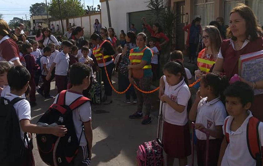 En la semana de la Seguridad Vial, los alumnos de Primer grado «B» de la Escuela Normal «Martín Miguel de Güemes», de San Luis del Palmar, acompañados por su Docente: Cristina Esquivel, concretaron con la colaboración y participación de los tutores, llevar a la comunidad el proyecto asistido por el Equipo Técnico del Ministerio de Educación, Educación y Seguridad Vial; jornadas que consintieron en llevar mensajes al publico de las zonas aledañas de la escuela, sobre la conciencia del uso del casco, el Cinturón de seguridad, el papel del peatón en la Vía Pública; y el uso del celular y consumo de alcohol, como mayores causales de los siniestros viales. Además de identificar las señales de tránsito, a la salida del colegio armaron durante las semanas del 10 al 28 de junio, un cordón con tutores y alumnos, vestidos de inspectores que simularon controles y repartieron folletos y láminas informativas sobre la Seguridad vial.