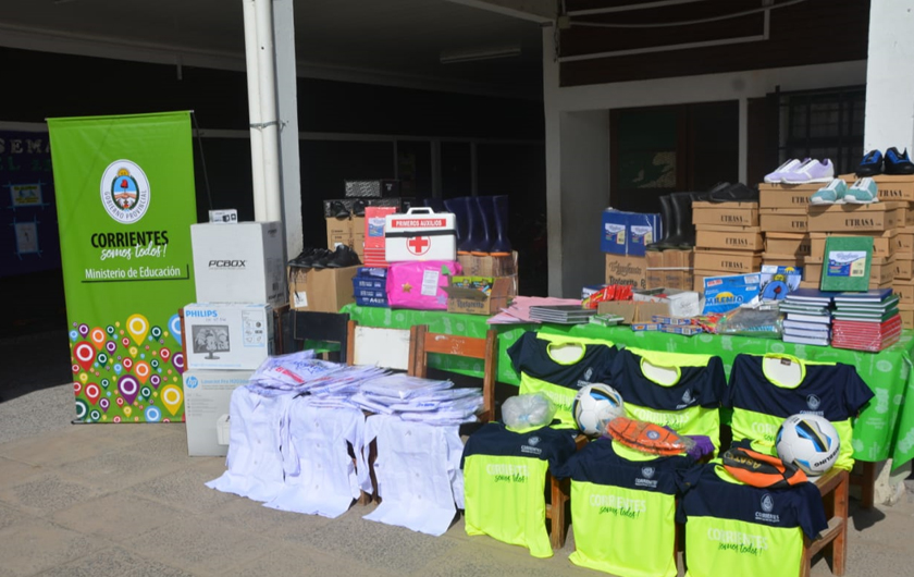 Asimismo, la ministra entregó a ambas escuelas sendas computadoras con impresoras láser para desarrollar tareas administrativas, al igual que banderas argentinas de izar, set de útiles, mochilas, guardapolvos, zapatillas, botas de gomas, registros varios, libros de actas, juegos de camisetas, pelotas de fútbol, vóley y básquet, botiquín de primeros auxilios y resmas de papel, además de material bibliográfico que incluye libros en lengua guaraní.