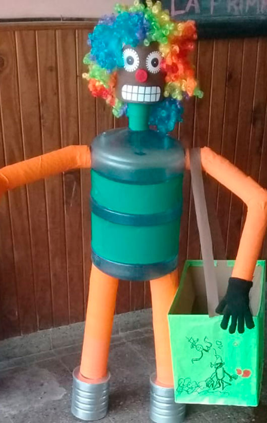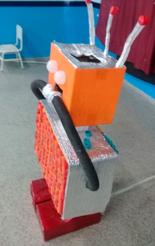 Docentes y alumnos del EJI N°33 «Los Pingüinitos» y EJI N° 10 «Las Ardillitas», crearon el viernes pasado un robot con elementos reciclables para sus jardines como parte del curso de Programación y Robótica dictado bajo el Programa Mitãi Digital. Los mismos servirán como contenedores de basura, concientizando así sobre la importancia de mantener limpia la salita.