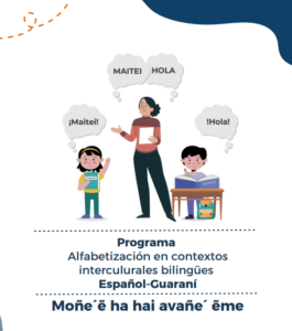 Desde la Coordinación de Educación Intercultural Biligüe perteneciente al Ministerio de Educación se han generado materiales específico para el trabajo de la alfabetización desde la perspectiva de la EIB: “Avañe´ẽ Roky”, “Asaje”, “Preparados, Listos, Ya! Aprender jugando en las clases de Lenguas”, “Kalo, cuentos con aroma a chipá” en versión español, portugués y guaraní, y diccionario “Avañe´ẽ del Taragui”.