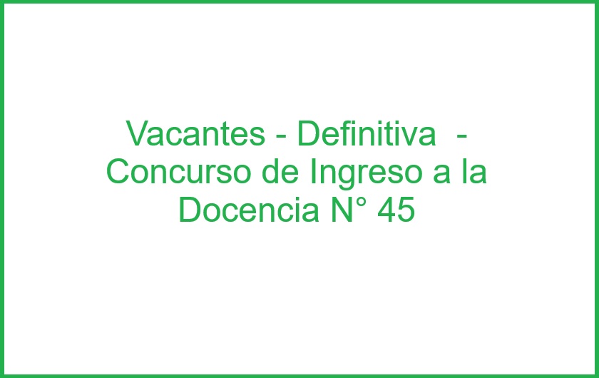 Publicado el 20 febrero, 202620 febrero, 2026 por Ministerio Educación de CorrientesVacantes – Definitiva – Concurso de Ingreso a la Docencia N° 45 Bolsa de Vacantes – Definitiva – Concurso de Ingreso a la Docencia N° 45. Descargar VACANTES Concurso Ingreso 45 – DEFINITIVO Descargar – Ley Rufino para Concurso Ingreso 45