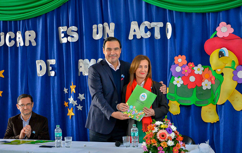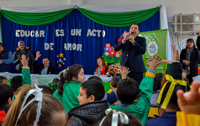 Por su parte, la directora de la Escuela Jardín de Infantes N° 3, Marta Pavón, agradeció al gobierno por su apoyo y compromiso, como también a los padres de los niños. Luego la docente, junto a seis alumnos, hizo la entrega de un mate y una bombilla al gobernador en símbolo de agradecimiento.