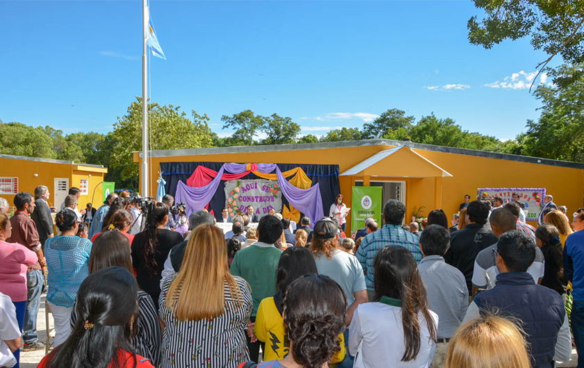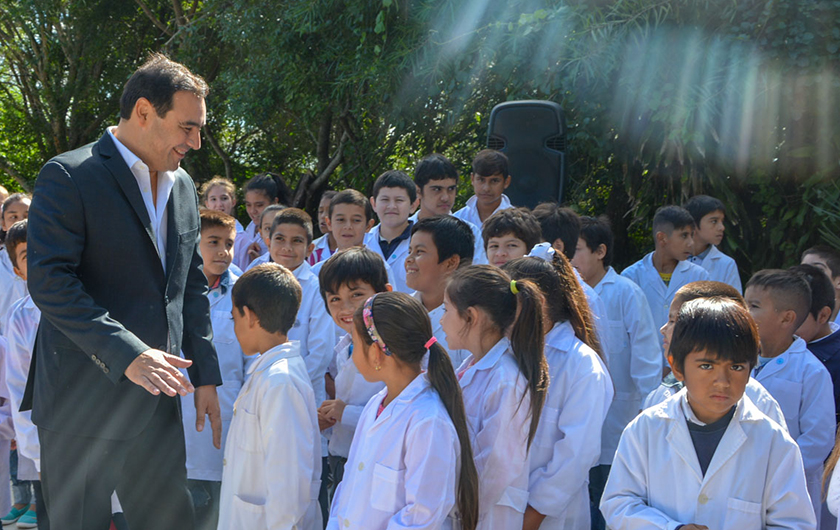 “Hace poco tiempo estos chicos daban clases en condiciones precarias”, dijo Benítez refiriéndose al estado de deterioro del antiguo edificio. “Hoy inauguramos la nueva construcción, es de los niños de hoy pero también de los de mañana”.